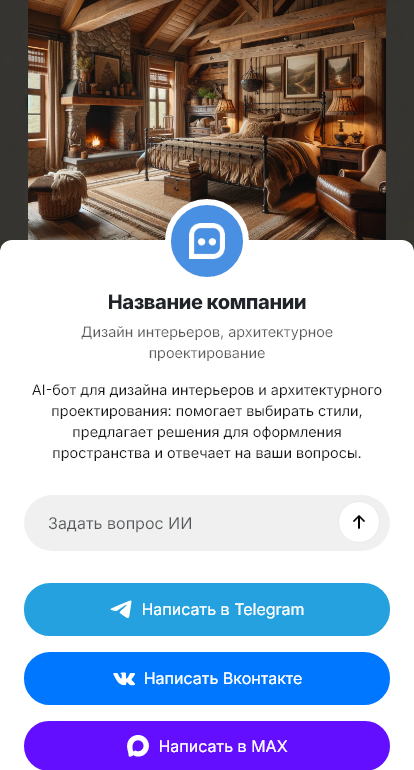 В итоге больше обращений превращается в консультации и договоры, а проектирование стартует быстрее. Бот работает в Telegram, VK, MAX и на сайте, превращая интерес к дизайну в оформленный бриф.