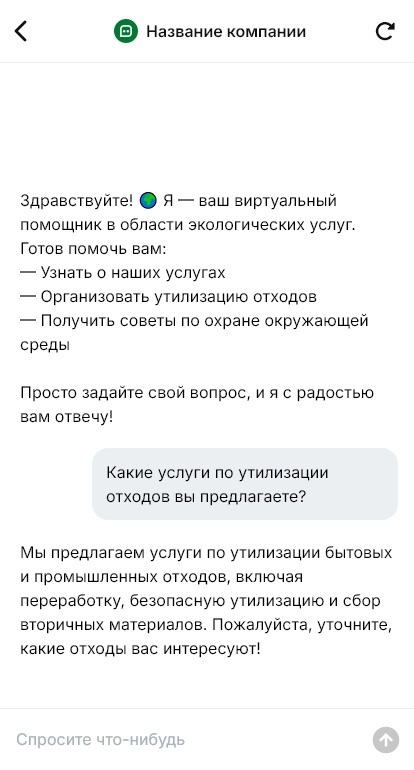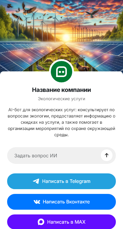 Бот работает в Telegram, ВК, MAX и на сайте 24/7, повышая скорость обработки обращений и помогая превращать запросы на экологические услуги в реальные проекты и договоры.