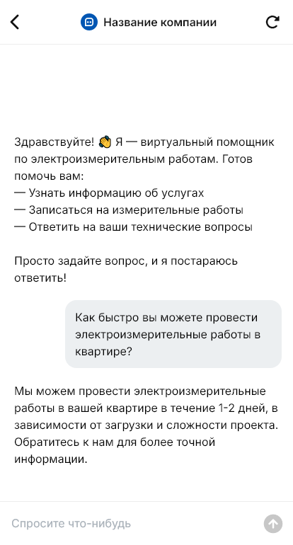 Затем бот объясняет этапы: согласование задания, выезд, проведение измерений, оформление протоколов и закрывающих документов. Бот предлагает выбрать время визита, фиксирует контакты и передаёт заявку инженеру или в CRM. Это ускоряет подготовку и снижает риск, что на объекте «всплывут» дополнительные требования без учёта в смете.