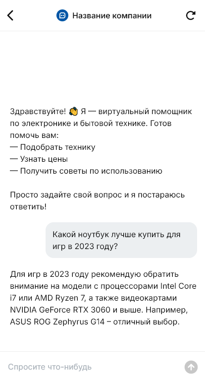 В магазинах электроники, компьютеров, бытовой техники и оргтехники клиенты приходят с конкретной потребностью, но не всегда знают, какая модель подходит: ноутбук для работы или игр, компьютер для монтажа, холодильник по габаритам, техника для кухни по мощности, принтер по объёмам печати. Поток вопросов огромный, а сравнение характеристик утомляет. Если ответов нет быстро, клиент уходит на маркетплейсы и выбирает «по отзывам», рискуя ошибиться.