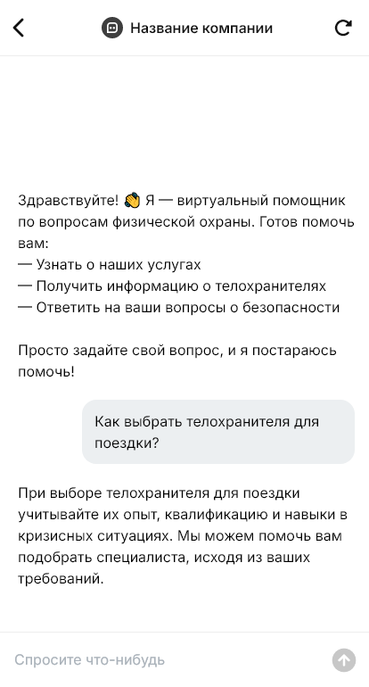 Для бизнеса это означает больше целевых заявок и аккуратный старт коммуникации. Для клиента — ощущение безопасности и профессионального подхода с первого сообщения, что в теме личной охраны является ключевым фактором выбора.