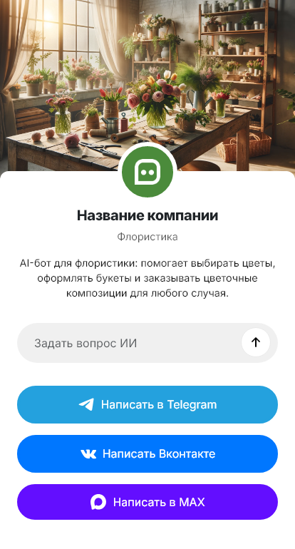Внедрение настраивается под вашу практику: портфолио, типовые пакеты, предоплата, доставка, интеграция с CRM и оплатой. Бот может принимать референсы и фото пространства, чтобы флорист предложил композицию, которая реально впишется.