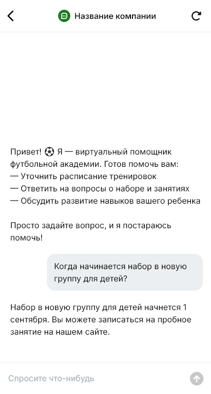 Футбольная академия живёт на дисциплине и регулярности, но стартовый этап часто хаотичный: родители пишут в разные каналы, задают вопросы про набор, расписание, стоимость, форму, медсправки, турниры и условия для новичков. Если администратор не успевает отвечать всем одинаково подробно, часть заявок теряется, а родители выбирают академию, где процесс записи проще.