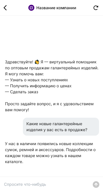 Галантерейные изделия оптом часто закупают магазины и маркетплейсы: сумки, ремни, аксессуары, фурнитура и сопутствующие товары. Важно быстро отвечать по наличию, ценам, минимальным партиям и доставке. Бот для оптовой галантереи автоматизирует первичный сбор данных и формирование заявки.