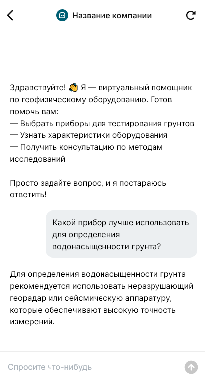 В итоге геофизические приборы подбираются точнее, проекты идут стабильнее, а заказчик быстрее получает рабочую систему измерений благодаря боту, который помогает согласовать методику и комплектацию.