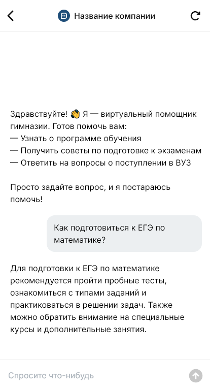 Внедрение выполняется под регламенты гимназии и сценарии общения с родителями. Это снижает нагрузку на сотрудников и повышает конверсию обращений в записи на мероприятия и заявления.