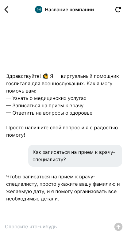 Госпитали получают обращения не только от пациентов, но и от родственников: условия госпитализации, список документов и вещей, правила посещения, контакты отделений, платные услуги, маршрутизация по корпусам. При высокой нагрузке часть сообщений остаётся без ответа. Бот для госпиталя помогает автоматизировать первичную коммуникацию и фиксировать обращения в едином месте.