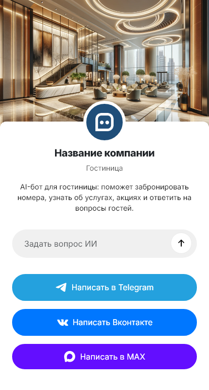 Внедрение настраивается под гостиницу: номерной фонд, тарифы, сезонность, услуги, правила, интеграция с PMS/CRM и оплатой. Бот может отправлять подтверждения, напоминания о заселении, инструкции по заезду и поддерживать гостя во время проживания, отвечая на частые вопросы.