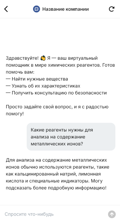 Химические реактивы выбирают по чистоте, концентрации, фасовке и совместимости с методикой. Клиенты спрашивают о наличии, сроках годности, условиях хранения, сертификатах анализа, вариантах упаковки и доставке. Ошибка в марке или классе чистоты может сорвать эксперимент, контроль качества или выпуск продукции, поэтому покупателю важно быстро получить точный ответ. При ручной обработке запросов растёт риск перепутать параметры и сроки.