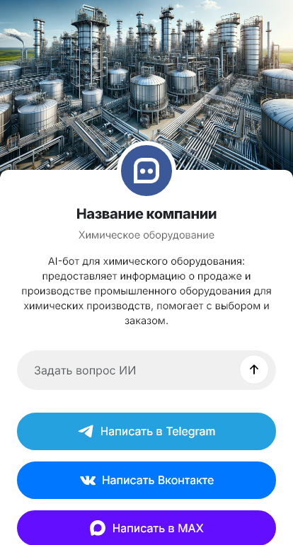 Бот помогает собрать технические вводные и подготовить коммерческое предложение. Он уточняет назначение оборудования, рабочую среду, объёмы, режимы, требования к материалам, необходимость автоматизации, ограничения по месту установки и сроки. Клиент может прикрепить техзадание или схему, чтобы инженер быстрее оценил задачу. Затем бот фиксирует контакт, формирует заявку на подбор и расчёт и отправляет подтверждение с понятным следующим шагом.