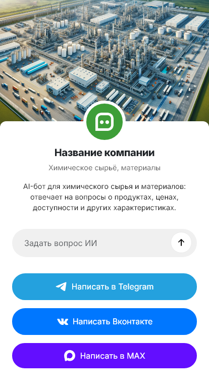 Бот для поставщика химического сырья помогает собрать вводные для корректного подбора. Он уточняет область применения (производство, лаборатория, технологический процесс), требуемые параметры качества, форму поставки (порошок, гранулы, жидкость), объёмы и регулярность, требования к упаковке и хранению, сроки и регион доставки. При наличии у клиента спецификации или паспорта качества бот предлагает загрузить документы, чтобы минимизировать ошибки.