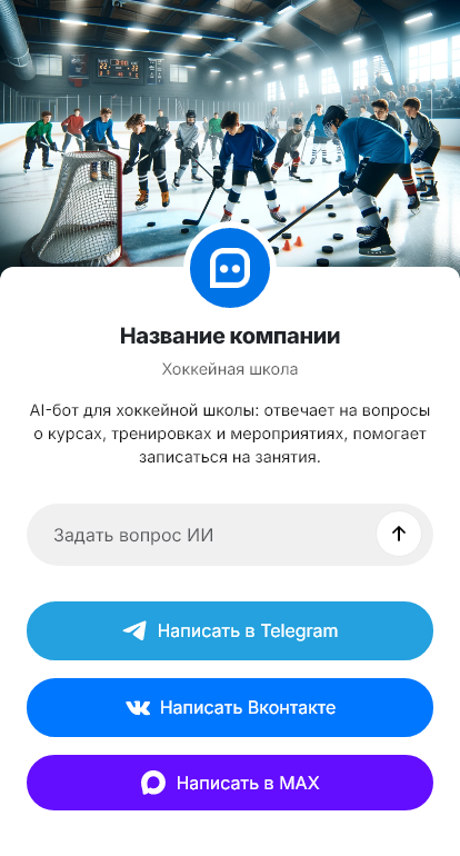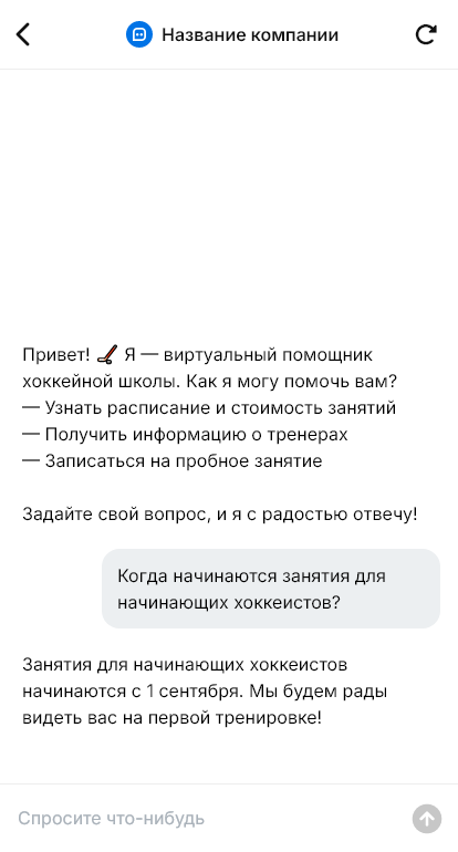 Хоккейная школа набирает детей увереннее, когда бот объясняет экипировку и помогает выбрать правильную группу