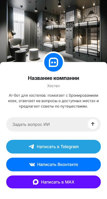 Внедрение настраивается под хостел: варианты размещения, тарифы, сезонные цены, правила проживания, self check‑in, интеграция с календарём занятости и CRM. Бот может отправлять инструкции по заселению, коды доступа, напоминания и помогать гостям во время проживания.