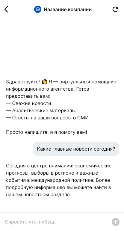 - уточняет тематику и формат (лента, дайджест, пресс‑релизы)