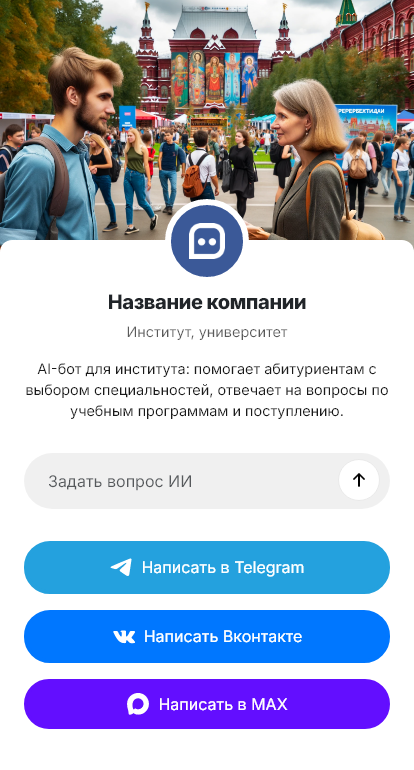 Институт и университет — это сложная система программ, правил поступления, дат и требований. Абитуриенты и их родители задают десятки вопросов: какие направления есть, какие проходные баллы, какие экзамены, какие документы нужны, есть ли общежитие, как подать заявление, какие сроки приёма, есть ли платное/бюджет. В сезон приёмной кампании нагрузка на приёмную комиссию огромная, а абитуриенты хотят быстрых и точных ответов.