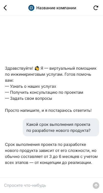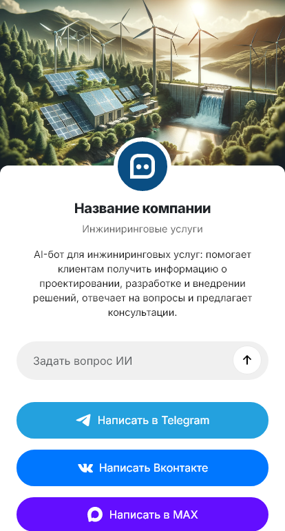 В итоге инжиниринговые услуги продаются и выполняются эффективнее. Бот работает в Telegram, VK, MAX и на сайте, ускоряет сбор вводных, помогает сформировать понятный план и довести клиента до результата, который можно проверить и принять.