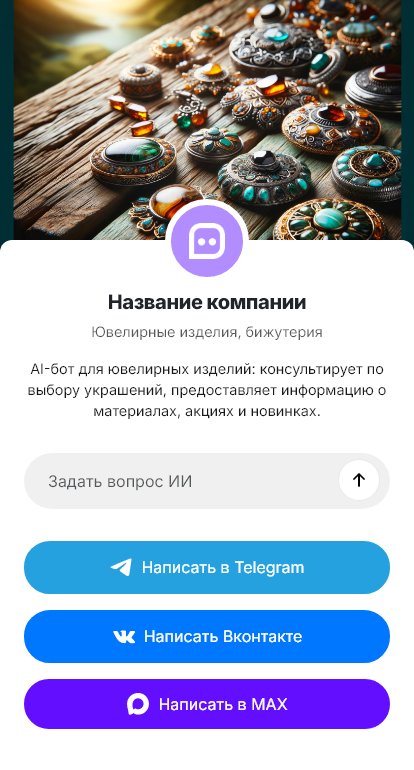 Бот работает в Telegram, ВК, MAX и на сайте 24/7, снижая нагрузку на консультантов и повышая продажи ювелирных изделий и бижутерии.
