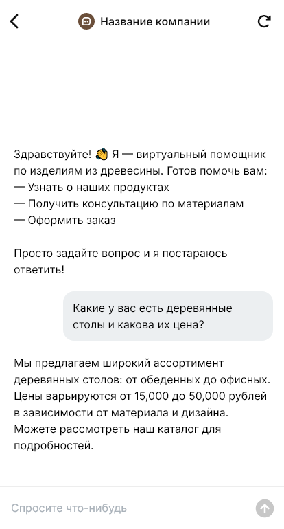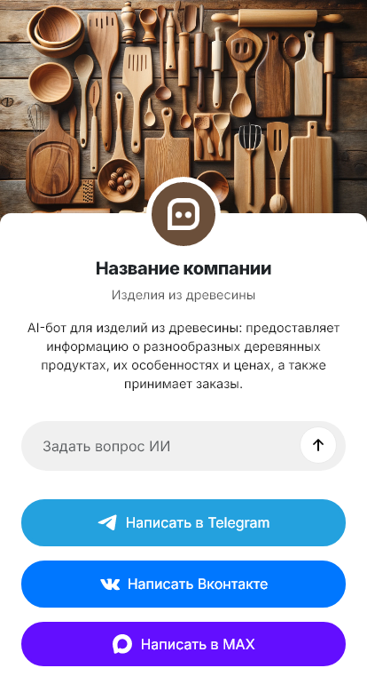 В итоге изделия из дерева покупают увереннее, потому что клиент видит прозрачный процесс и понимает, что именно получит. А мастерская или производство получают больше заказов и меньше недопониманий благодаря структурированному диалогу в Telegram, VK, MAX и на сайте.