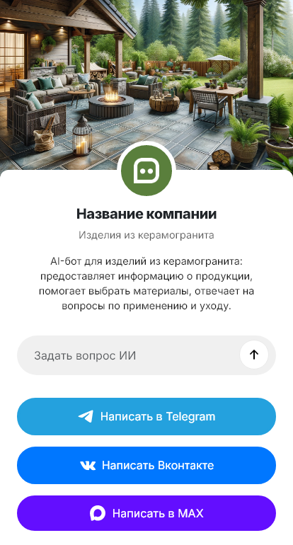 В итоге изготовление изделий из керамогранита становится удобнее и быстрее. Бот работает в Telegram, VK, MAX и на сайте, помогает собрать точные вводные, ускоряет расчёт, снижает ошибки в спецификации и доводит заказчика до готового изделия и монтажа без лишних созвонов.