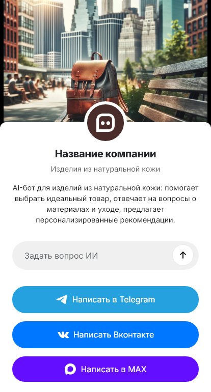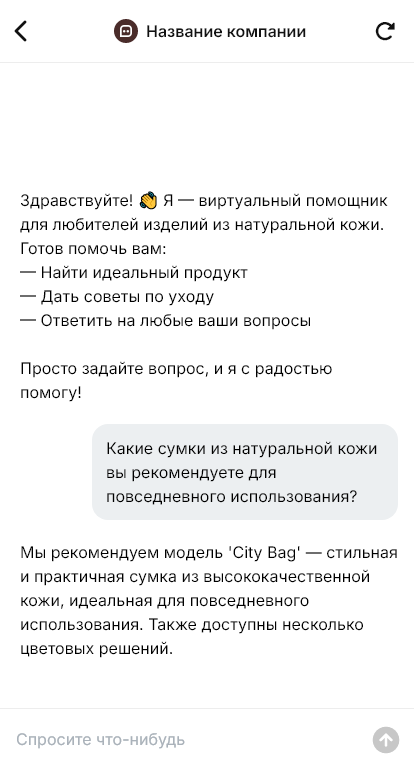 Бот для брендов кожаных изделий помогает собрать все вопросы клиента в одном диалоге и передать их менеджеру в структурированном виде.