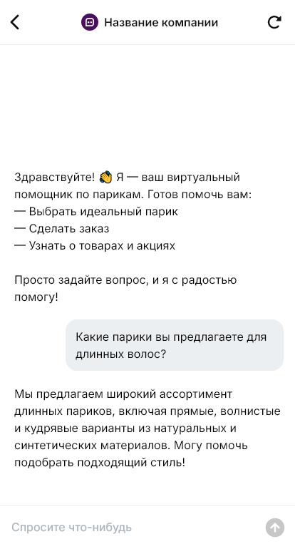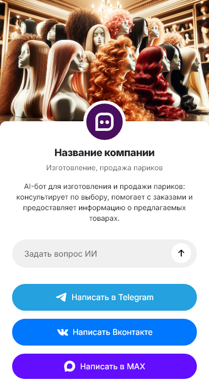Изготовление и продажа париков почти всегда начинаются с вопросов. Клиенту важно понять, какая модель подойдёт по форме лица и стилю, из какого материала выполнен парик, как подобрать оттенок, как снять мерки и как ухаживать за изделием. Часто покупка связана с деликатными обстоятельствами, поэтому человеку нужна аккуратная и понятная коммуникация без лишних звонков и повторов. При ручной переписке консультации занимают много времени, а часть клиентов не решается сделать заказ.