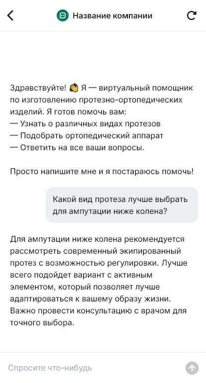 Изготовление протезно‑ортопедических изделий требует точного сбора данных: тип изделия, направление врача, сроки, документы, этапы примерок и стоимость. Клиенты часто пишут в мессенджеры с вопросами, а длительная переписка перегружает специалистов. Бот для протезно‑ортопедических изделий помогает автоматизировать первичную консультацию и сбор заявки.
