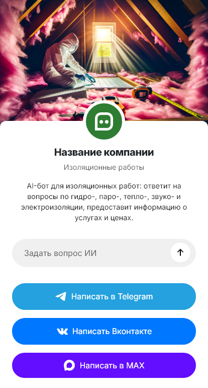 Изоляционные работы редко заканчиваются одной фразой «сделайте утепление». Клиенты спрашивают про материал и толщину, точку росы, долговечность, влагостойкость, стоимость за м² и сроки, а также хотят понять, какие подготовительные работы нужны и как будет выглядеть результат. Если на первом контакте нет понятного сценария, переписка растягивается, часть заявок теряется, а клиент уходит к тем, кто ответил быстрее. Бот для изоляционных работ помогает автоматизировать первичное общение и доводить диалог до замера и расчёта.
