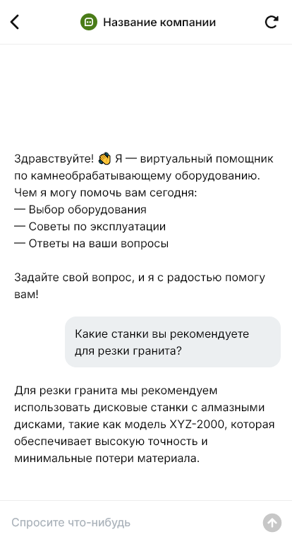 Камнеобработка приносит меньше брака когда бот помогает подобрать станок под породу и требуемую геометрию
