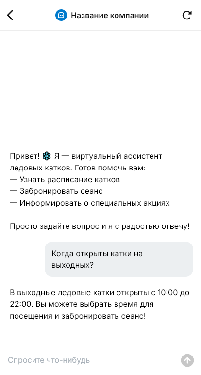 Каток — сезонный бизнес, где решают расписание и удобство. Люди спрашивают, когда сеансы, сколько стоит билет, есть ли прокат коньков, какие размеры, как работает заточка, есть ли льготы, нужна ли запись, можно ли с детьми, как добраться и где парковка. В холодные выходные поток сообщений огромный, и если ответ задерживается, часть клиентов выбирает другое место, потому что решение о посещении принимается быстро.