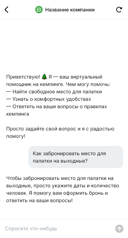В результате растёт количество бронирований и снижается нагрузка на администраторов, потому что типовые вопросы закрываются автоматически. Гости приезжают подготовленными и довольными, а кемпинг получает больше повторных визитов и рекомендаций благодаря понятному и заботливому сервису.