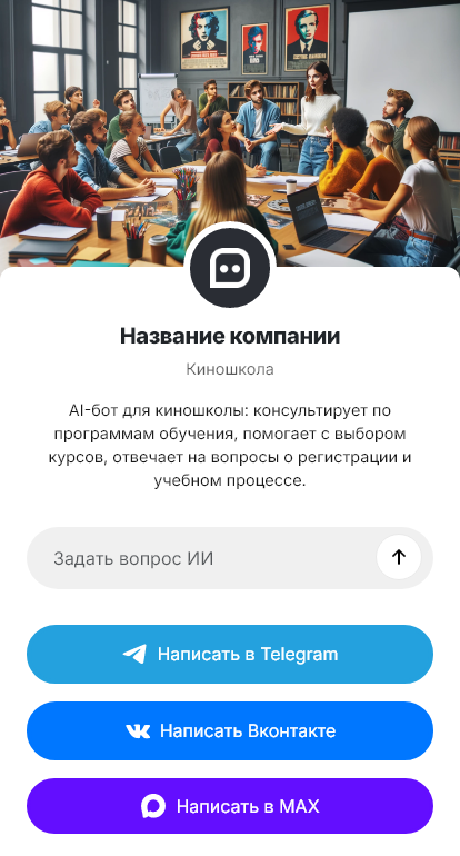 Киношколы получают много обращений: программы, мастер‑классы, длительность, стоимость, преподаватели, портфолио, набор в группу и условия участия в съёмках. Если отвечать с задержкой, интерес быстро пропадает. Бот для киношколы автоматизирует первичную консультацию и доводит диалог до заявки.