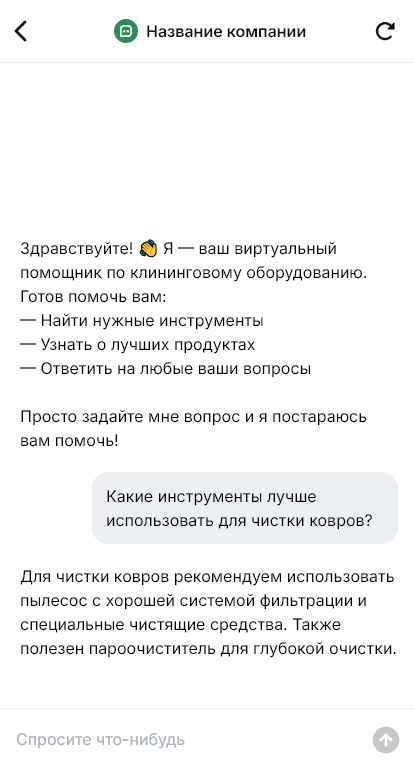 Клининговые инструменты продаются быстрее когда бот подбирает расходники под покрытие и формат уборки