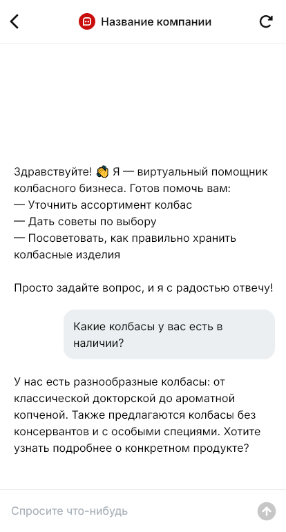 Колбаса и колбасные изделия часто выбираются по конкретному сценарию. На бутерброды, к завтраку, на пикник, к празднику, на нарезку, для горячих блюд или гриля. Покупатели спрашивают о составе, копчении, жирности, наличии аллергенов, сроках годности, производителе и цене, а также о доставке и фасовке. При ручных консультациях продавец тратит время на однотипные вопросы, а часть клиентов не доходит до покупки, потому что выбор кажется сложным.