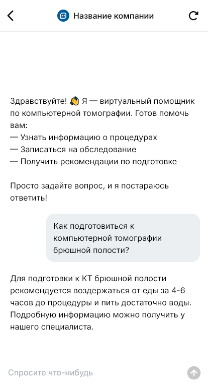 Компьютерная томография часто требует точной организации: подобрать удобное время, уточнить тип исследования, подготовку и документы. Пациенты спрашивают, как записаться, сколько длится процедура, что взять с собой, как перенести визит и где находится центр. При ручной обработке сообщений администраторы перегружаются, а часть обращений теряется. Дополнительная сложность в том, что важны детали записи, чтобы не было ошибок в формате исследования и времени посещения.