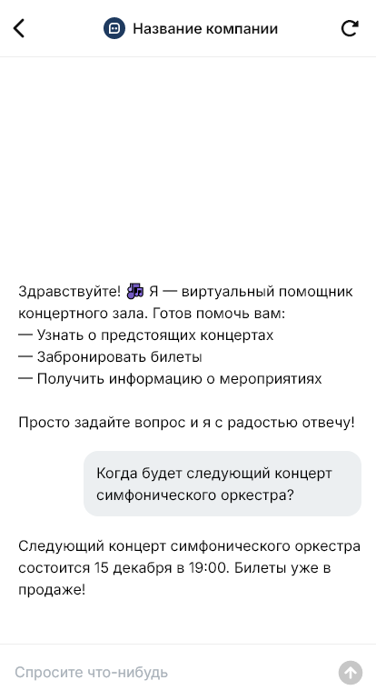 Перед событиями концертные залы получают множество сообщений: афиша, цены, места, правила прохода, парковка, время начала. Если ответы приходят с задержкой, зритель может не купить билет или выбрать другое мероприятие. Бот для концертного зала помогает автоматизировать ответы и доводить диалог до покупки.