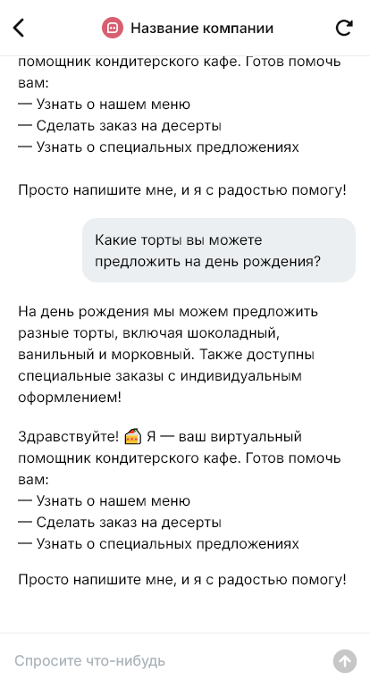 В кондитерское кафе гости приходят за настроением, поэтому им важно быстро понять ассортимент и условия. Какие десерты сегодня в наличии, можно ли забронировать столик, есть ли торты кусочками, есть ли варианты без сахара, как оформить заказ на вынос и сколько ждать. В часы пик сотрудники заняты в зале, и переписка в мессенджерах остаётся без внимания. Из‑за этого часть гостей не доходит до визита и выбирает другое место.