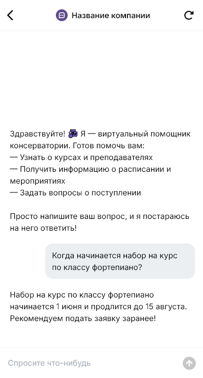 Консерватория получает обращения от абитуриентов: специальности, требования к прослушиванию, сроки подачи документов, перечень экзаменов, проживание и расписание консультаций. В период набора поток вопросов резко растёт, и часть обращений остаётся без ответа. Бот для консерватории помогает автоматизировать первичную коммуникацию и фиксировать заявки.