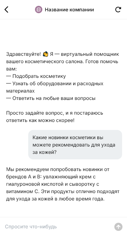Бот для поставщика салонных материалов помогает оформить заказ «по задаче», а не по каталогу. Он уточняет профиль салона и направления, какие процедуры делают чаще, какие бренды используются, что нужно пополнить и в каком объёме, есть ли аппараты и модели, для которых нужны насадки или расходники. Бот может предложить готовые наборы, подсказать аналоги при отсутствии, оформить повторный заказ по истории покупок и сразу собрать реквизиты для счёта.