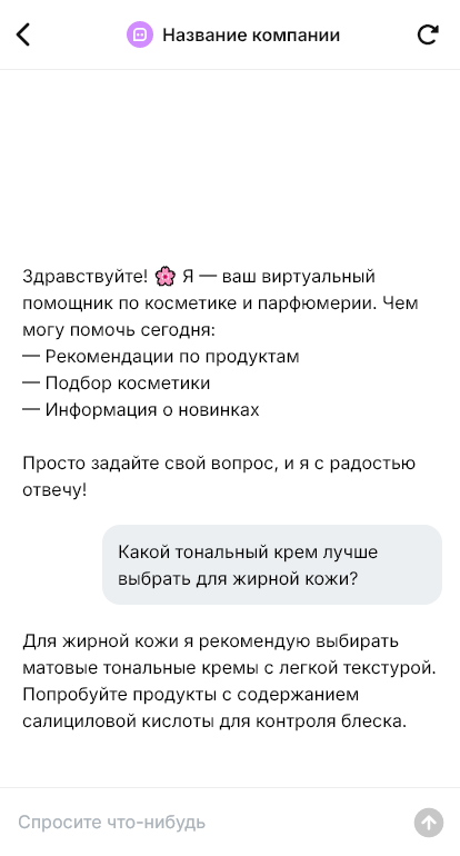 В косметике и парфюмерии выбор часто начинается с вопроса «что мне подойдёт». Клиенты уточняют тип кожи, эффекты, состав, наличие аллергенов, как сочетать средства, а по парфюмерии — ноты, стойкость, сезонность и похожие ароматы. Если отвечать вручную, консультации занимают время, а покупатель не всегда готов ждать. В итоге часть обращений не превращается в покупки, особенно когда трафик идёт из рекламы.