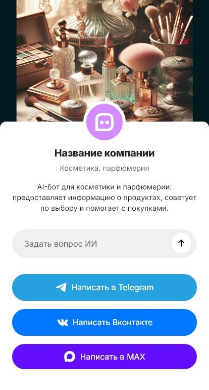 В итоге косметика и парфюмерия продаются стабильнее, потому что подбор становится быстрым и удобным. Бот работает в Telegram, VK, MAX и на сайте, превращая вопросы о составе и нотах в оформленные заказы.