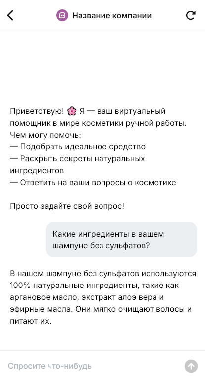 Косметика ручной работы продаётся увереннее когда бот объясняет состав и подбирает уход