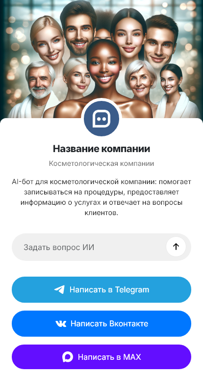 В итоге растёт конверсия обращений в покупки и увеличивается удержание. Бот работает в Telegram, VK, MAX и на сайте, превращая вопросы о проблемах кожи в структурированный выбор и заказ.