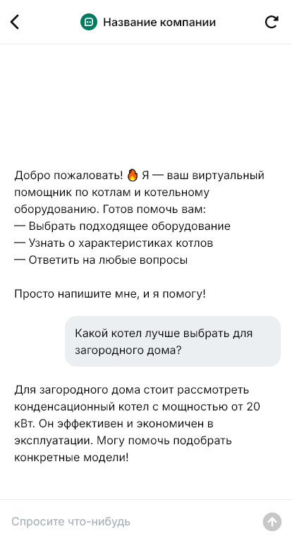 Покупка котла и котельного оборудования редко сводится к выбору модели по мощности. Нужно учитывать тип объекта, теплопотери, вид топлива, схему отопления, требования к дымоудалению, автоматику, безопасность и дальнейшее обслуживание. Клиент часто пишет «какой котёл лучше», не имея точных расчётов, и если консультация идёт вручную, она превращается в длинную цепочку уточнений. Пока менеджер собирает данные, заказчик уходит к тем, кто быстрее даёт понятный план и расчёт.