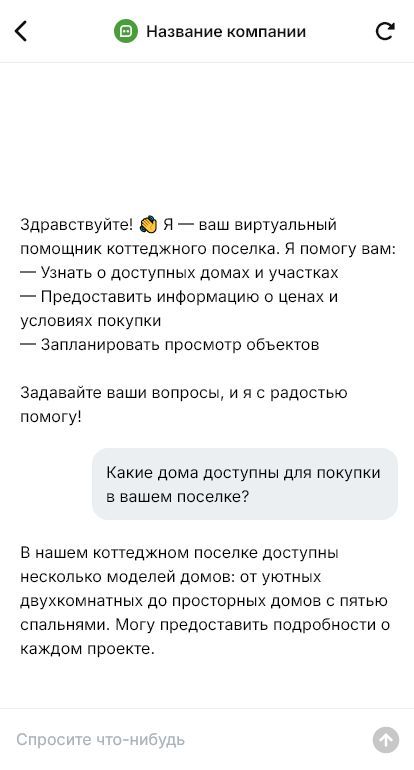 В итоге коттеджный поселок получает больше записей на показы и меньше потерь на первом контакте, потому что бот быстро даёт информацию и ведёт человека к следующему шагу без лишних звонков.