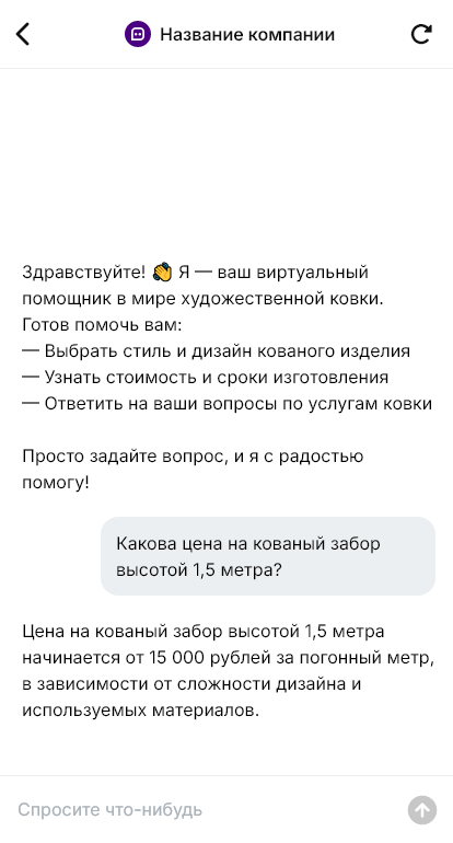 Ковка продаётся дороже когда бот помогает подобрать стиль и рассчитать изделие по месту