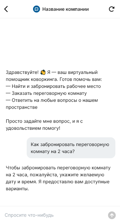 Коворкинг заполняет рабочие места когда бот бронирует столы и объясняет условия