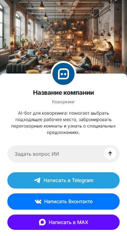 В итоге коворкинг увеличивает конверсию обращений в оплату, улучшает загрузку и делает коммуникацию удобной в Telegram, VK, MAX и по ссылке на сайте.