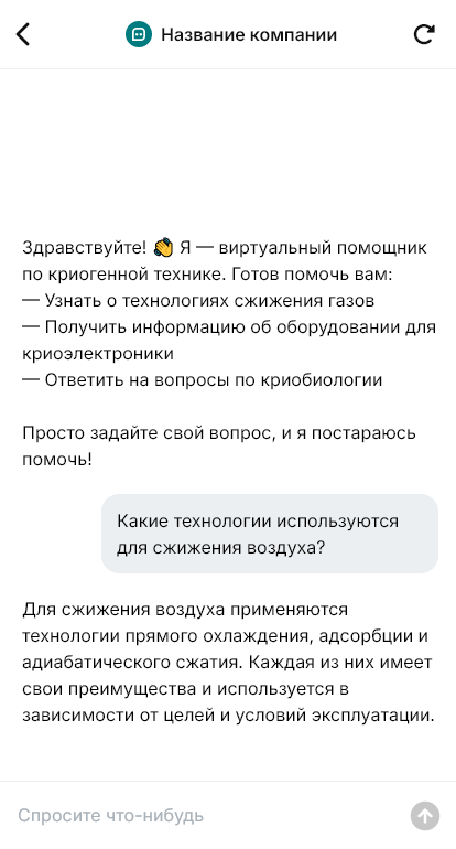 В сопровождении бот держит проект и сервис. Он уведомляет о стадиях, согласование, изготовление, поставка, монтаж, испытания, обучение. Он хранит паспорта и регламенты, помогает быстро получить документы при проверке. При сервисных обращениях бот собирает симптомы, показания датчиков, фото узлов и серийные номера, чтобы специалист быстрее подготовился. В итоге криогенные системы внедряются предсказуемее, а эксплуатация становится безопаснее и прозрачнее благодаря боту.