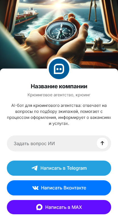 Бот для крюингового агентства помогает автоматизировать первичный сбор данных и снизить хаос. Для моряка бот собирает должность, стаж, типы судов, районы плавания, английский, доступность, зарплатные ожидания, а также запрашивает документы и сертификаты. Для судовладельца бот уточняет вакансию, требования, срок контракта, условия, порт посадки и сроки закрытия. Затем бот маршрутизирует заявку в нужного менеджера и фиксирует контакт.