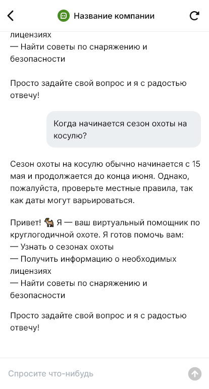 Круглогодичная охота — это не просто «поехать на выходные», а услуга с множеством условий: сезонность по видам, правила хозяйства, требования по оружию и перевозке, проживание, трансфер, сопровождение, лицензии, путёвки и безопасность. Большая часть клиентов пишет в мессенджеры в нерабочее время и задаёт одни и те же вопросы: на что можно охотиться сейчас, какие есть программы, сколько стоит, какие документы нужны, где жить и как добраться. Если ответы приходят медленно, интерес остывает, а клиент уходит к другому хозяйству или организатору.